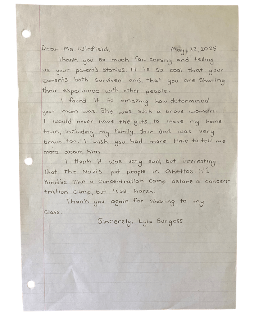 It was so powerful to hear your family’s story and I know that it touched many students.